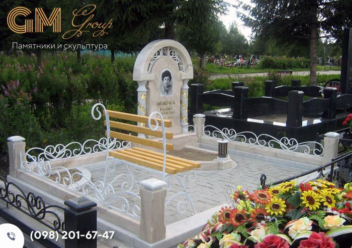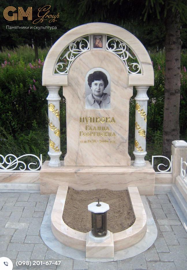 Красивий мармуровий пам'ятник жінці з колонами та аркою №8061